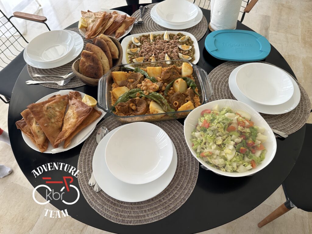 A potem szybki dojazd do głównej drogi (z wiatrem i z górki, ha!), przejazd przez El-Fahns i jesteśmy na miejscu. Gdzie czeka wypaśny domek z basenem, wyborny obiad i przemiłe gospodynie. Rozszpejowujemy rowery, jemy obiad i… zamierzamy zrobić dokrętkę, bo w pobliżu są „ruiny rzymskiego akweduktu”…
